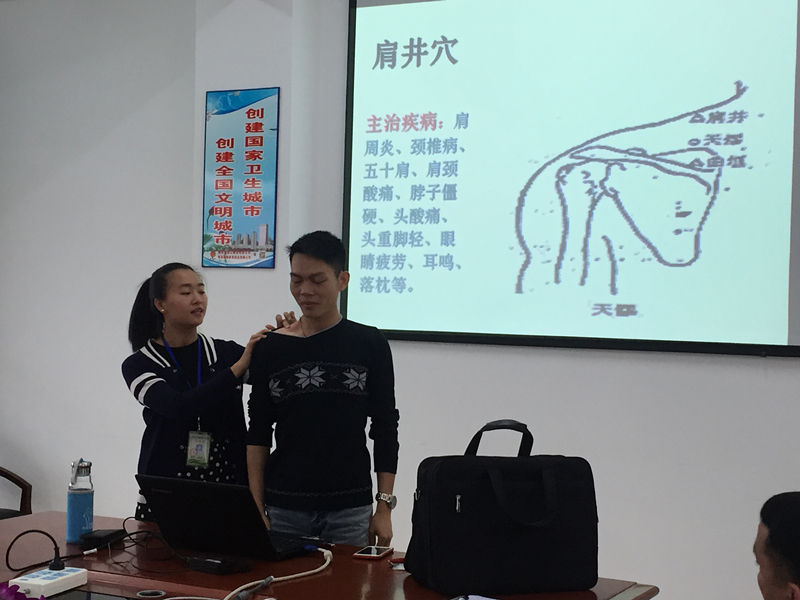 講座內(nèi)容貼近生活。幽默風(fēng)趣。張雪老師用淺顯易懂的語(yǔ)言介紹“健康生活”的概念,從與生活,工作息息相關(guān)的職業(yè)病,救護(hù)知識(shí),穴位保健等出發(fā),結(jié)合圖片并通過(guò)日常點(diǎn)滴事例,認(rèn)真詳細(xì)講解了如何預(yù)防職業(yè)病及如何通過(guò)穴位緩解身體疼痛等問(wèn)題,F(xiàn)場(chǎng)還為員工示范如何辨識(shí)各個(gè)穴位,通過(guò)穴位療法來(lái)改善頸椎病,肩周炎等。講座結(jié)束后,我司員工還同張雪老師就有關(guān)疾病預(yù)防和健康知識(shí)進(jìn)行了互動(dòng)交流。