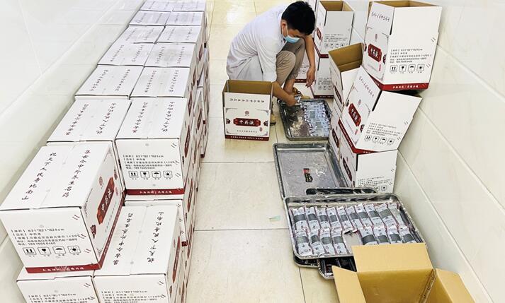 調(diào)劑室的藥師們負責審核、調(diào)劑、復核處方;煎煮車間按操作規(guī)程進行:泡、煮、打包的工序;成品庫統(tǒng)一收集成品,待冷卻后貼標、封裝、制單;配送人員星夜兼程,馬不停蹄地將中藥防感湯第一時間送往海口市二十六個隔離點供三千余人服用,并向各市縣中醫(yī)院配送共計約一萬余付。各個工序忙而不亂,忙而有序。壽南山將士們在非常時期,表現(xiàn)出了可貴的責任擔當,大家心連心、肩并肩,主動參與、積極配合、鼎力支持疫情防控工作,共同筑起了堅不可摧的阻擊防線。