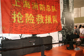 展覽廳里,同志們久久駐足于一面簽滿名字的旗幟前,在這面從重災(zāi)區(qū)映秀鎮(zhèn)帶回、印有“上海消防總隊(duì)”字樣的旗幟上,簽滿的是上海消防總隊(duì)搶險(xiǎn)救援隊(duì)全體隊(duì)員的名字,每一個(gè)有力的簽名就是一個(gè)滾燙的承諾。紅旗下,曾成功探測(cè)出蔣雨航等生命訊息的視頻(蛇眼)生命探測(cè)器等器械見證了一個(gè)又一個(gè)生命奇跡的誕生。同志們表示,旗子上密密麻麻的簽名,給人心靈上的震撼,那上面每個(gè)看似平凡的名字,都是值得敬畏的英雄。
