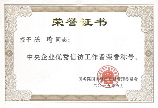 陳琦同志能認真貫徹十八大以來特別是十八屆三中、四中全會精神,以改革和法治精神推動信訪工作,抓制度、抓預防、抓處置,做到了思想不放松、責任不放手、問題不放過,保證了信訪工作常抓不懈,有效開展,為維護企業(yè)穩(wěn)定做出了積極貢獻。
