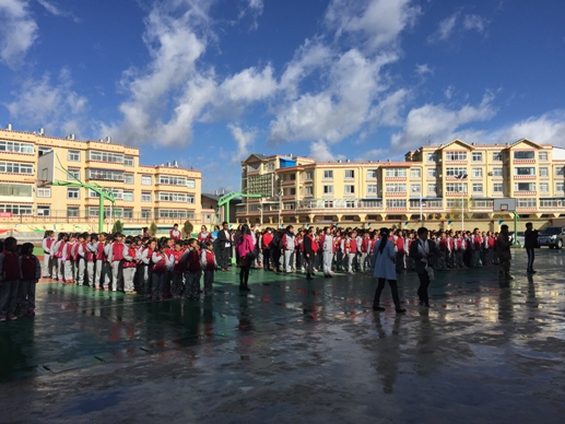 全校師生參加升國(guó)旗和捐贈(zèng)儀式