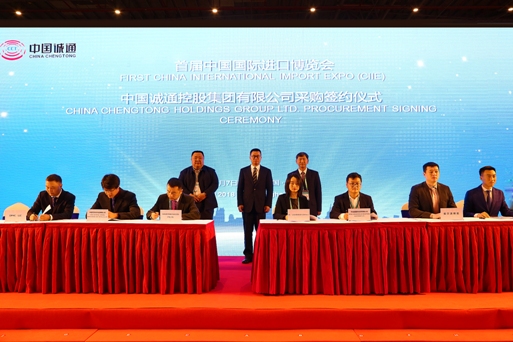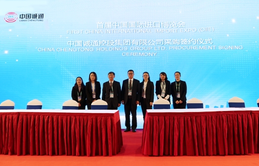 11月7日,中央企業(yè)交易團中國誠通交易分團在進博會上舉辦集體簽約儀式。中國誠通集團副總裁童來明、誠通東方總經(jīng)理關(guān)武出席并見