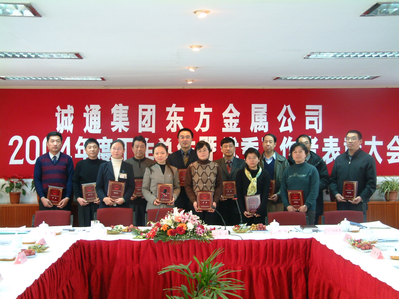 2005年1月17日至18日,誠通集團東方金屬公司2004年度工作總結(jié)暨優(yōu)秀工作者表彰大會在太倉青草湖度假村召開,公司副總經(jīng)理陳琦同志主持會議。公司總部及其下屬企業(yè)共30余人出席了這次大會。